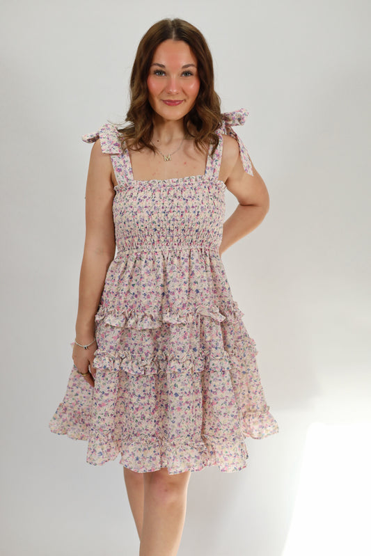 Brooklyn Bow Mini Dress- LAVENDER