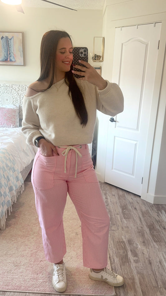 Poppi Barrel Pants- Pink Stripe