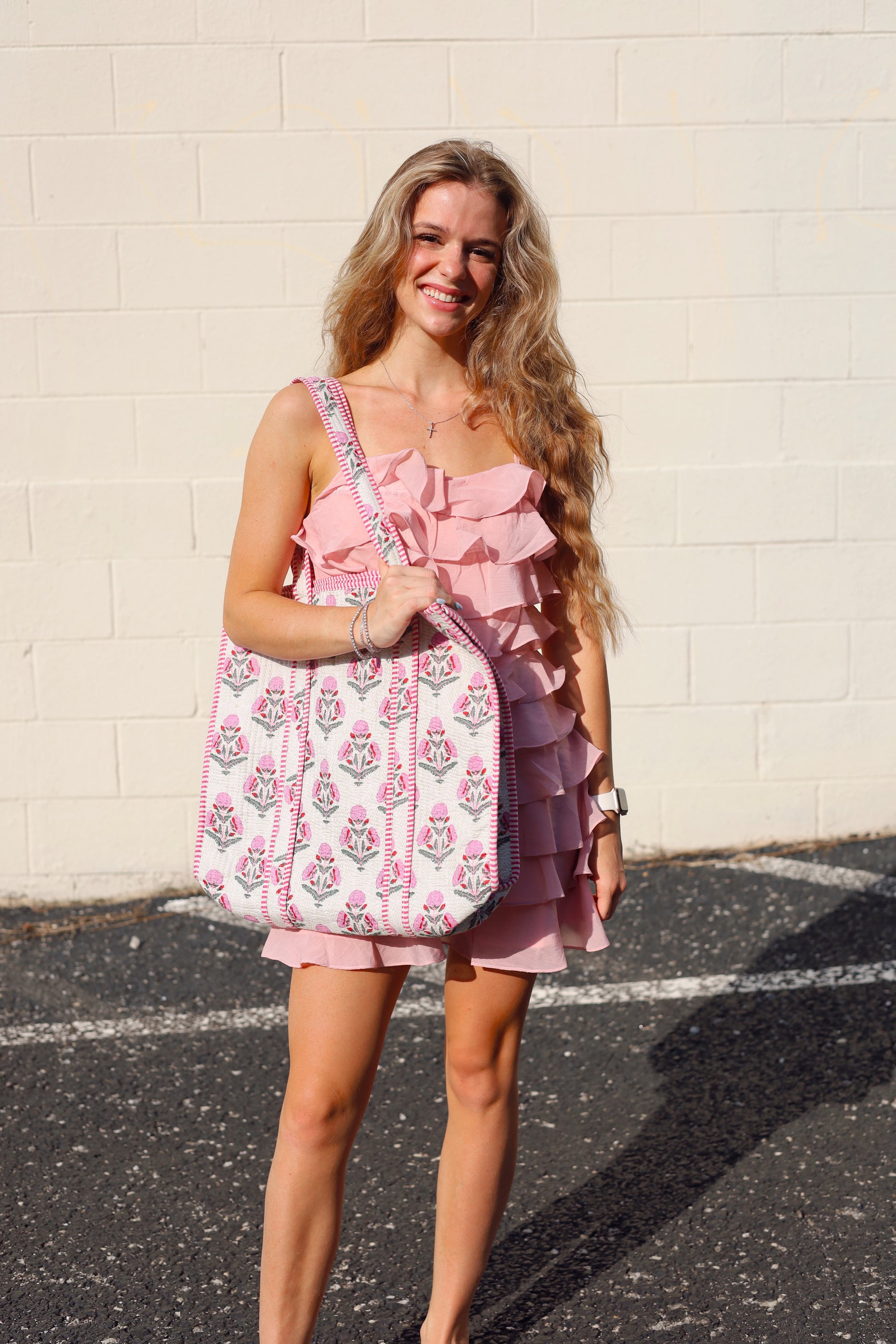Cotton quilted travel Bag made by Indian Artisans, This cotton quilted shopping bag is totally unique and multi purpose. Use this for your grocery or as a travel bag. Perfect to suit all.