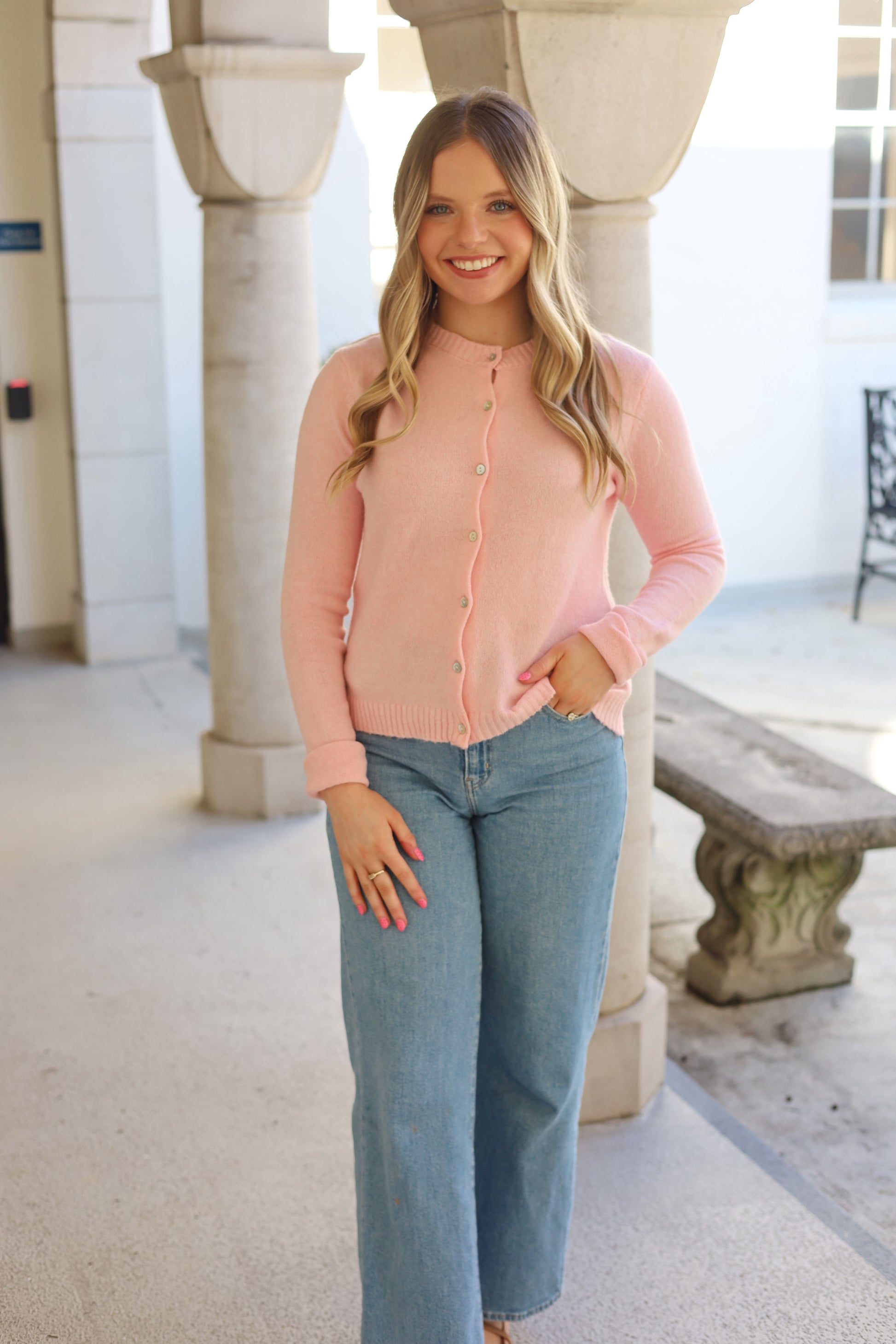 The Evie Cardigan is your new go-to layer for effortless style. This soft pink button-up features a relaxed fit that works beautifully over tees, dresses, or worn open as a lightweight jacket. Perfect for transitional weather, it adds a pop of color to any outfit while keeping things cozy and comfortable.