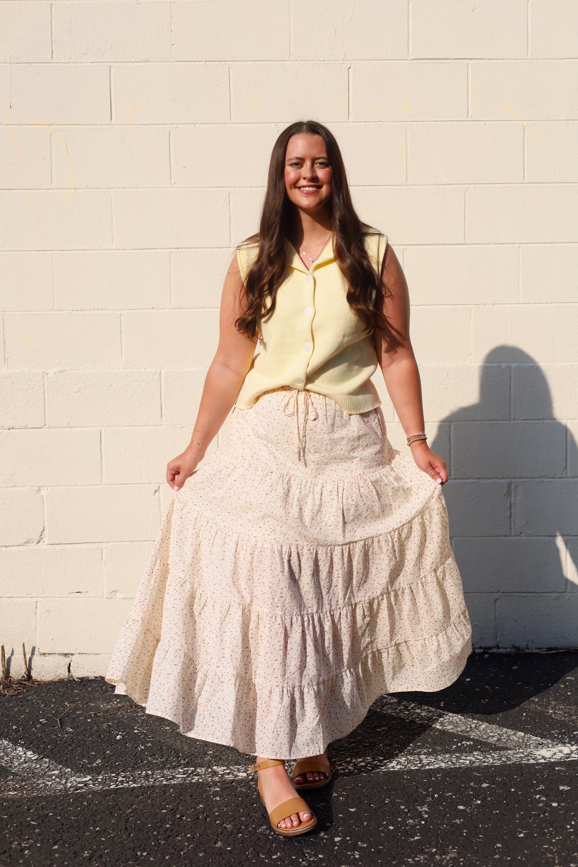 Embrace cozy comfort with the Mae Button Top, a butter yellow sweater featuring charming button details down the center. Its inviting color and thoughtful design make it a versatile addition to your wardrobe, supporting your everyday look with a touch of brightness and comfort.