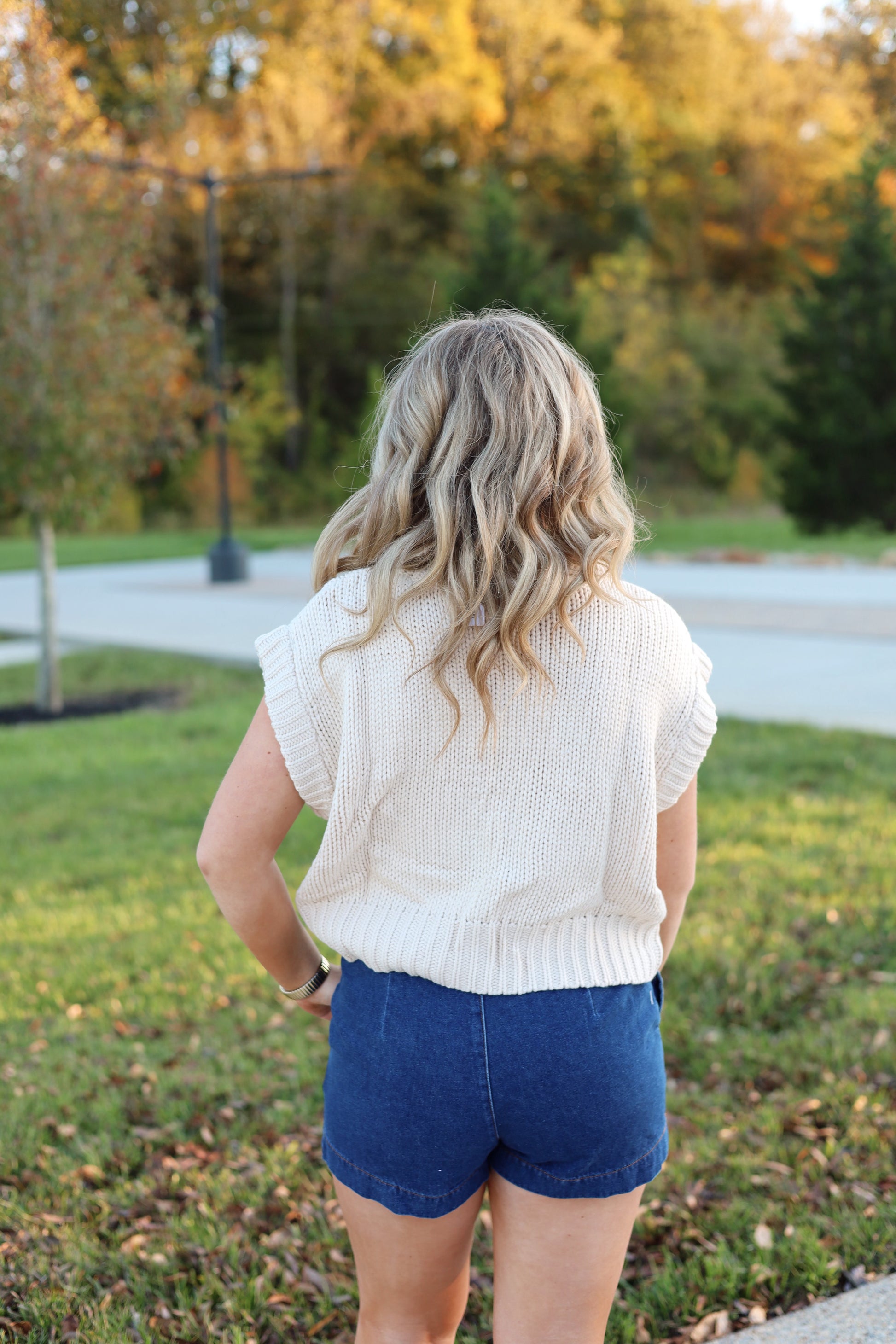 Stay cozy and stylish with this Sleeveless Cropped Turtleneck Knit Sweater Top in a soft cream shade. Its fold-over turtleneck adds warmth and a chic touch, while the sleeveless design keeps it versatile for layering or wearing alone. The cropped length pairs perfectly with high-waisted bottoms, making it an effortless addition to your wardrobe for transitional seasons.